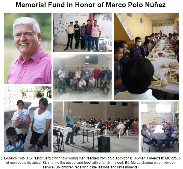 Marco Polo Núñez was the founder of Casa de Cristo of Guadalajara, Mexico (1973), a church that is still thriving and on fire for the Lord. Casa de Cristo has a branch–Ministerio de Alcance Jezreel A.C.– in the drug-troubled town of Santa Ana adjacent to the big city. There, a very able pastor and his wife, along with their team, work tirelessly both in making disciples of Jesus Christ and in answering the townspeople's pleas for help with their drug-addicted children. The great need for a drug and alcohol rehabilitation center cries out, where both lives and souls can be saved. Their ministry is buying property next to their church to build a rehab center. This Memorial Fund will help their work to go forward with a harvest into eternity. Thank you for considering a one-time or recurring donation to a cause that was dear to Marco’s heart.